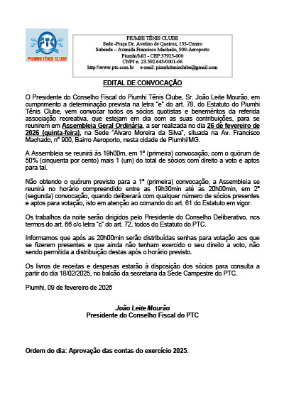 Edital de Convocação – Aprovação das contas do exercício 2025